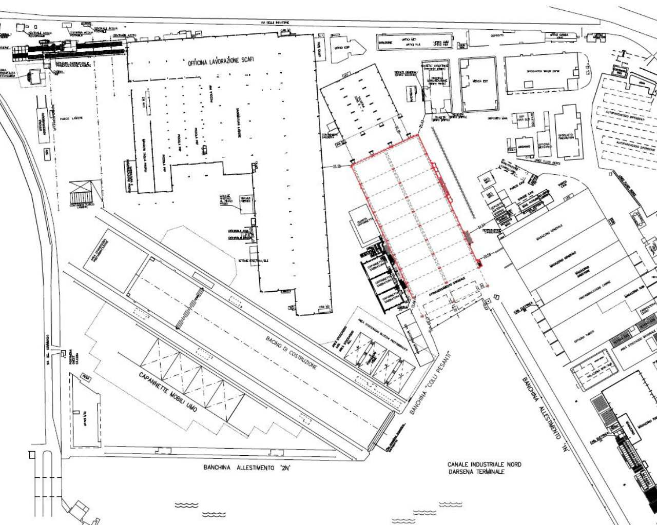 L’intervento in oggetto prevede innanzitutto la demolizione delle strutture esistenti presso l’area ex-scali. Tali strutture sono rappresentate da n. 7 tendostrutture mobili e n. n. 2 gru su rotaia con portata massima 35 tonnellate.