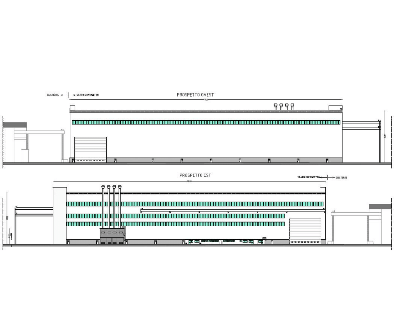 Su ognuno dei fronti est ed ovest sarà presente, inoltre, n. 1 apertura per il passaggio dei mezzi, dotata di serramento di tipo a pacchetto.